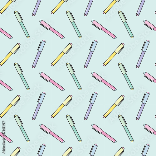 seamless repeat pattern for school with pen elements, fun colorful pattern