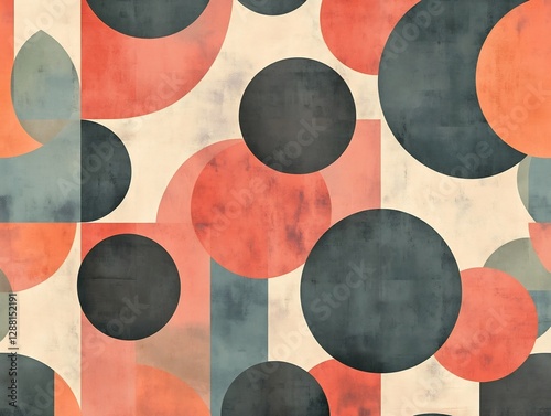 Seamless Repeating Geometric Pattern with Spheres and Circles in Grey and Orange Colors