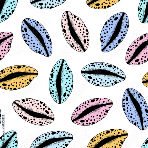 Seamless sea pattern with colorful shells.Colorful vector summer background.Textile texture