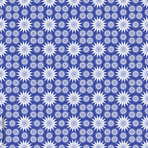 Seamless simple pattern vector background with white geometric floral decorative print ornament on a blue background. Can be used for fabric, wallpaper, packaging.