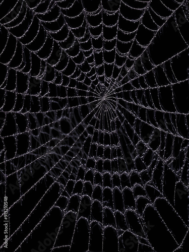 Seamless spider web with dew drops against an abstract black background, halloween theme, illustration wallpaper