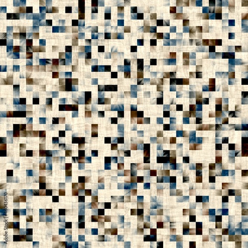 Seamless square tile faux wall mosaic pattern for surface design and print. High quality illustration. Detailed ornate grid repeat swatch.