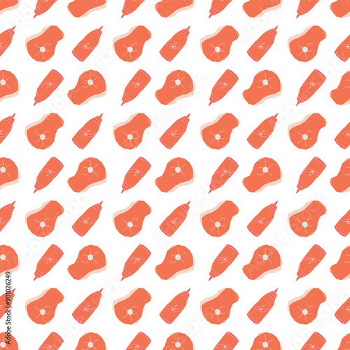 seamless steak pattern. meat background. Doodle illustration with meat products icons