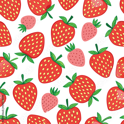 Seamless Strawberry Pattern on Pristine White Background for Fabric and Design
