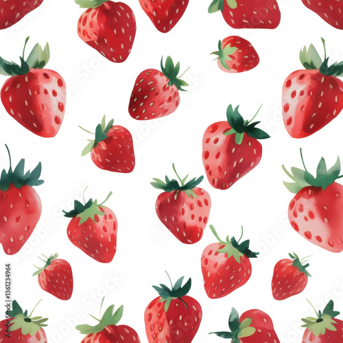 Seamless Strawberry Pattern with Watercolor Effect, Isolated on a Transparent Background, PNG, Cutou