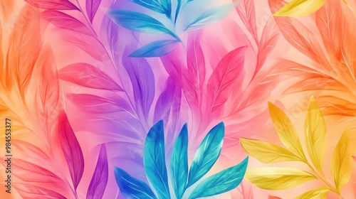 Seamless Summer Plant Watercolor Print with Gradient Repeated Hippie Beach Style Doodle Continuous Nature Design Vivid Simple Quill Wallpaper
