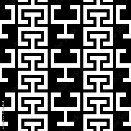 Seamless surface pattern design with Chaine Femme tiles ornament. Oriental traditional ornamentation with repeated sign shapes. Ancient mosaic wallpaper. Grid motif. Digital paper. Vector art image.