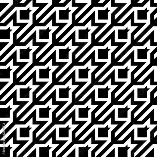 Seamless surface pattern design with houndstooth material ornament. Tooth figures wallpaper. Fabric background. Cloth mosaic motif. Digital paper, textile print, page fill, web designing. Vector art.