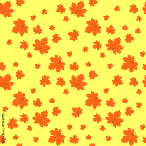 Seamless texture maple leaf on light orange background. Perfect for wallpapers, wrapping papers, pattern fills, textile, autumn greeting cards, Thanksgiving Day cards.