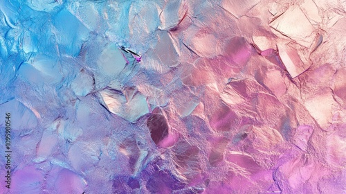 Seamless textured iridescent glass with a smooth pastel gradient of pink, blue, and lavender, featuring a soft holographic refracted pattern reminiscent of unicorn foil, with subtle blurry pearlescent