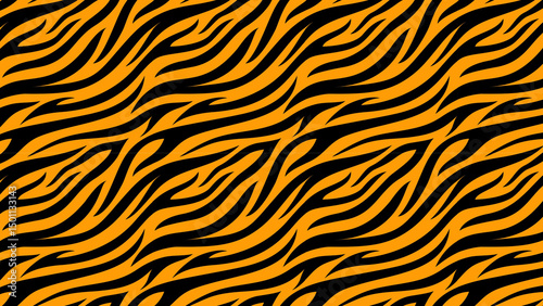 Seamless tiger stripe pattern in orange and black with curved lines and animal print design