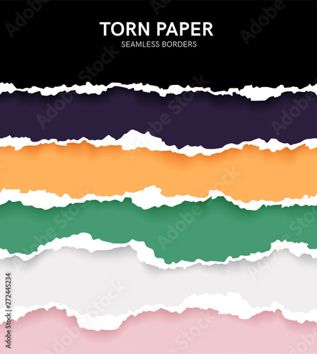 Seamless torn ripped paper layered isolated. Blue color. Transparent background. Realistic template. Simple modern design. Flat style vector illustration.