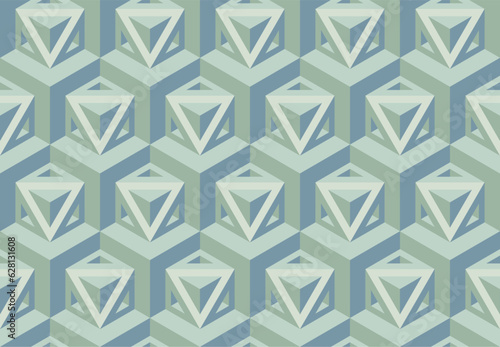 Seamless vector 3D geometric pattern with optical illusions. Op Art. Modern pastel color template for wrapping, cards, fabric, packing. Endless khaki background. Wallpapers. 3D Tile