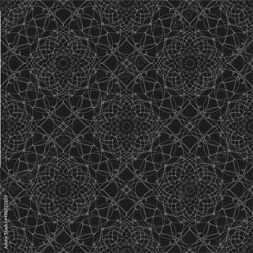 Seamless vector pattern of a mandala in white color on a black background. Ethnic pattern, Moroccan.