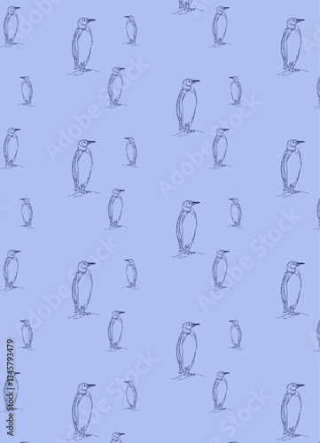 Seamless vector pattern penguin blue background handmade