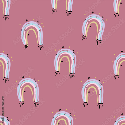 Seamless vector pattern with cute rainbows and hearts