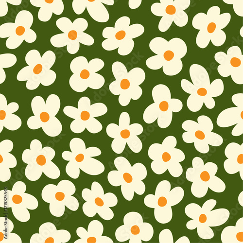 Seamless vector pattern with daisies on the grass. Floral ornament