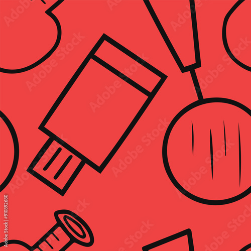 Seamless vector pattern with school supplies and USB drives for back to school on black background
