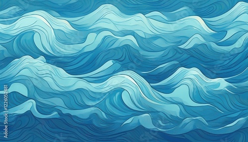 Seamless Water Texture Tile Realistic Wavy Sea Ocean Waves for Surface Mapping in Architecture Game, Offering an Immersive and Aesthetic View of a Deserted Island Landscape