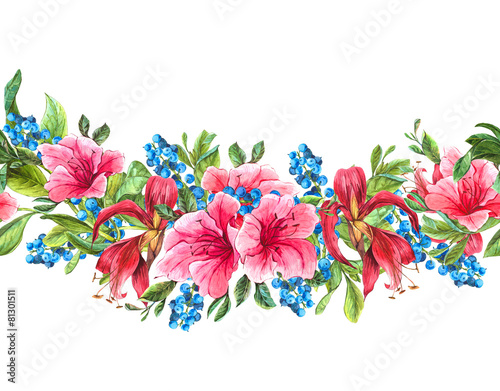 Seamless Watercolor Border with Tropical Flowers