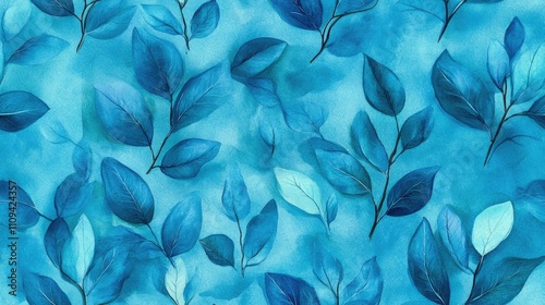 Seamless watercolor pattern featuring leaves and branches on an abstract vintage backdrop stylish turquoise boho design