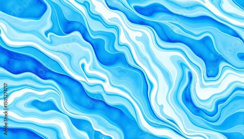 Seamless watercolor pattern of flowing blue and white water, gentle waves and subtle ripples, art, surface