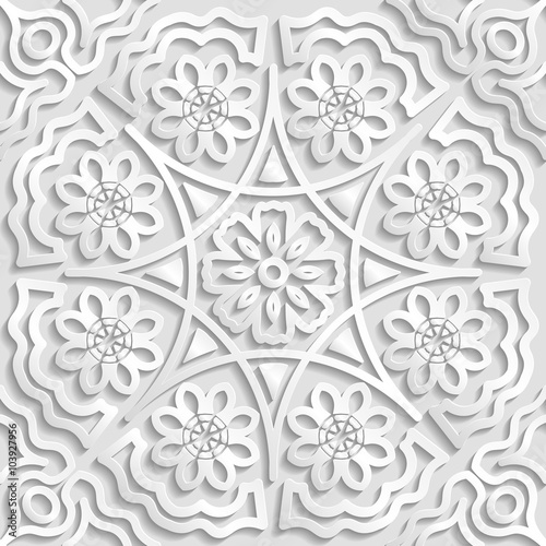 Seamless white geometric pattern, floral ornament, indian ornament, persian motif, vector. Endless texture can be used for wallpaper, pattern fills, web page background,surface textures.