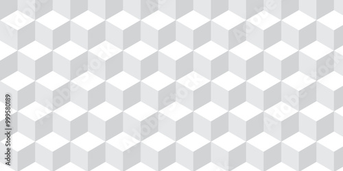 Seamless white geometric cube creative concept triangle overlapping overlap square technology background. geometric digital cubes fabric and wallpaper grid block texture background.