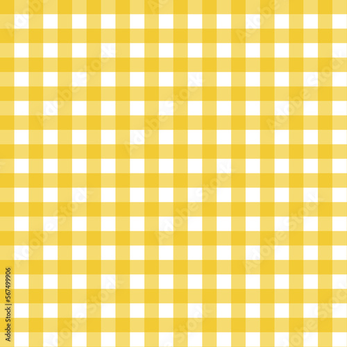 Seamless yellow checkered plaid fabric pattern texture. Stripes crossed horizontal and vertical lines.Seamless checkered picnic background