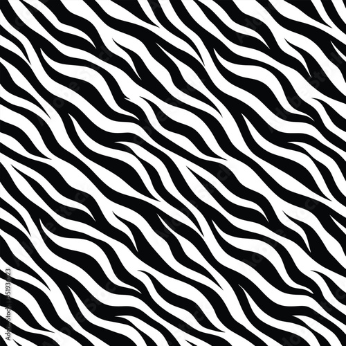 Seamless Zebra Skin Vector Pattern Dynamic Black and White Stripes for Textile