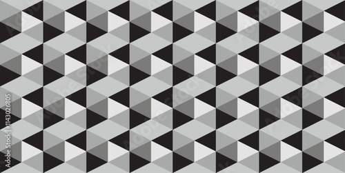 Seamlessly repeatable black and white mosaic pattern. Tessellation, geometric grayscale background