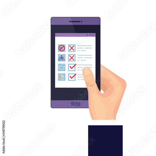 searching covid 19 information online in smartphone vector illustration design