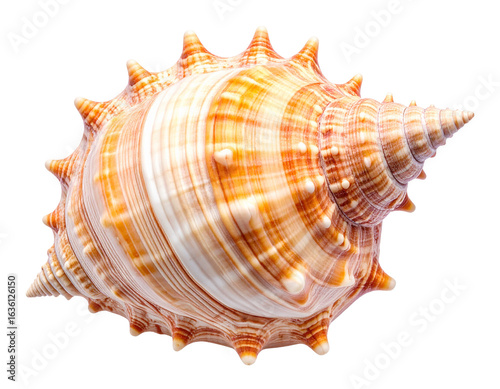 Seashell, isolated and elegant, rests alone on a clean white background. This minimal composition highlights natural texture, oceanic origin, and perfect symmetry—ideal for design, nature-themed conte