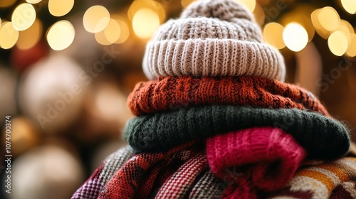 Seasonal clothing like scarves, hats, and gloves in cozy, festive looks.Seasonal clothing like scarves, hats, and gloves in cozy, festive looks.