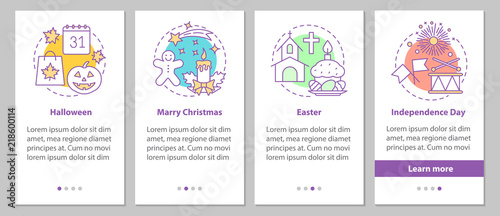 Seasonal holidays onboarding mobile app page screen with linear
