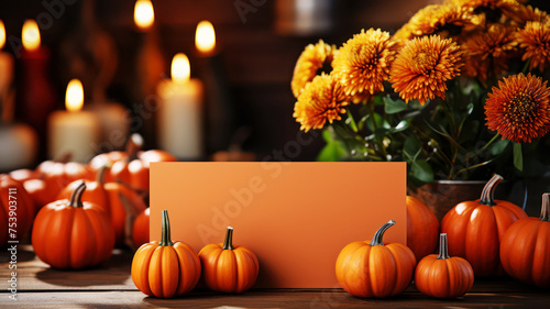 Seasonal pumpkins and vibrant flowers setting the scene for a customizable card
