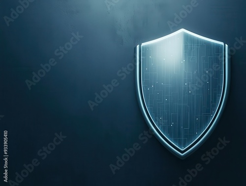 Secure data lock, glowing holographic shield, dark tech backdrop, cyber security