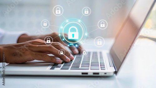 Secure Data Management with Laptop and Digital Lock Interface for Cybersecurity Concept
