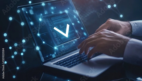 Secure laptop with checkmark graphic, signifying successful digital verification
