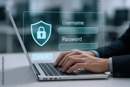 Secure Login Interface on Laptop: Cybersecurity Concept for Online Data Protection and Privacy