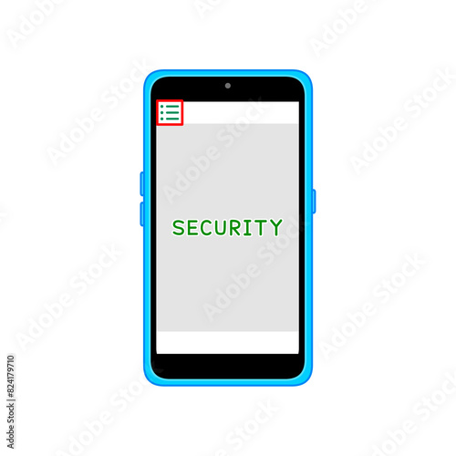 メニューアイコンとSECURITYが表示されたスマートフォン