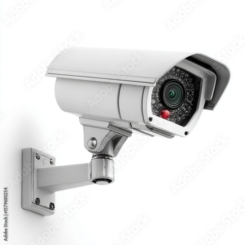 Security Camera on White Wall, Close-up of Surveillance System with Infrared LEDs, Monitoring and Protection Equipment, CCTV Camera for Safety and Crime Prevention, Modern Technology for Security
