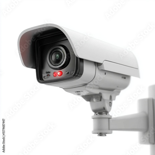 Security Camera with Red Lights on White Background, Surveillance System for Safety and Protection, CCTV Camera for Monitoring, Security Technology, Crime Prevention and Property Protection