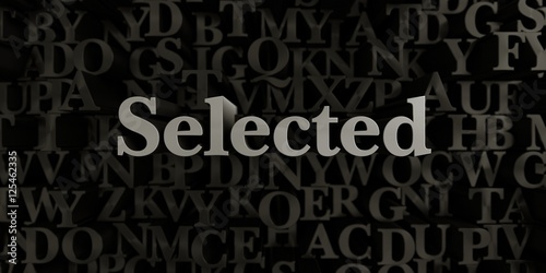 Selected - Stock image of 3D rendered metallic typeset headline illustration. Can be used for an online banner ad or a print postcard.