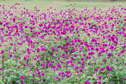 Selective focus beautiful Gomphrena globosa flower blooming in spring season.Also called Globe Amaranth,Makhmali and Vadamalli.Purple flower in the garden.