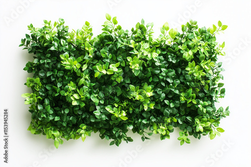 Selective focus geometry shape bush wall isolated on white background, Square shape green bush in backyard garden decorative.