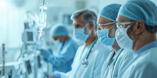 Selective focus of several male doctors standing and observing the symptoms. Generative AI