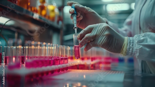 Selective focus on a vet tech preparing dermatology instruments, highlighting the preparation and cleanliness, in an organized and bright space, veterinary clinic backdrop