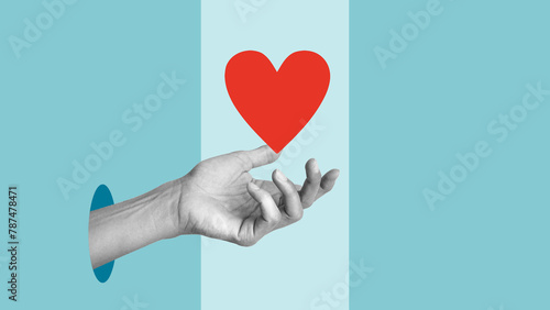 Self-compassion and Empathy concept. The power of emotional intelligence, soft skill development. Collage with hand and heart