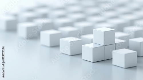 Self-organizing Infomorphic Neurons Concept. Minimalistic White Cubes Arranged on a Smooth Surface for Abstract Background or Design